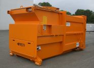 PRESTO Wet waste compactors are used to dispose of large quantities of moist or very wet residual waste or commercial waste that is similar to household waste. As in all other systems, the PRESTO wet waste compaction container is firmly attached to the container. The material is compacted by a pendulum compaction plate with an electro-hydraulic drive system.